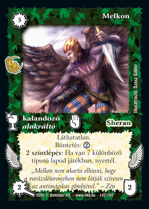 A retró éra utáni közvetlen meta nagy sztárja. Gonosz VP elvevő képességét a tesztelői csapat száműzte (pedig biztos jó lett volna 3-ért Vidám manó, 4-ért Melkon, 5-ért Asztrális polip, 6-ért Tudatfaló - szerk.), és csupán büntetésnek hagyta meg. Önmagában egy 2/2-es repülő kalandozó, amelyik láthatatlan 5 VP-ért, az nem egy rossz lap. Biztos, hogy hordákban, kalandozós paklikban, repülő lényes koncepciókban helye lesz, de lássuk be, elég unalmas lap lett volna. Így a tesztelés végső szakaszában kapott 2-es szintlépésre egy unikális képességet, igen, egy alternatív győzelmi lehetőséget. Azt gondolom, hogy rengeteg kísérlet lesz a Melkon-paklik építésére, és egy érdekes színfoltot hoz majd be a játékba. De valószínűleg inkább meg fog maradni az örök érdekes paklik kategóriájában, mintsem hogy utált gyilkos kombódeck legyen belőle.