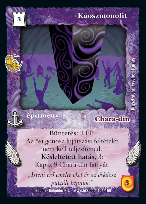 Miután Chara-din elárulta az összefogást, megjelentek Ghallán a Káoszmonolitok egy új sötét kor eljövetelét hirdetve. Ehhez úgy gondoltuk, hogy illően epikus építményt kell kreálni. Az ősi gonoszról itt csak annyit mondanék, hogy sárkány, a nagyobbacska fajtából, aki nagyon nem szereti Raiát és Eleniost, meg úgy általában a varázslatokat sem.Ettől eltekintve kapunk egy jól védett építményt, ami meg tud minket ajándékozni 9 fattyal. Annyi még őrposztba is sok. Mire tudjuk őket használni? Hát, ha már épületekről van szó, például szívesen lebzselnek a Kínzókamra környékén. Néha koncentrált támadást indítanak. Máskor egyszerűen Ősi rítusokban vesznek részt. De persze nem kizárt, hogy egyszerűen teljes frontot alkotnak vagy kimásznak a Thargodan csatamezőre.Nem árt figyelni arra, hogy normál esetben az előkészítő fázisban először kapjuk meg a fattyakat, utána aktivizálódnak a lapok - tehát kis fatty osztagunk egyből tettre kész lesz. Említésre méltó még esetleg, hogy a Káoszmonolit maga nem esik le miután megajándékozott minket a fattyakkal. Lehet áldozni utána Darunak, Fattyak urának, diszkosznak.