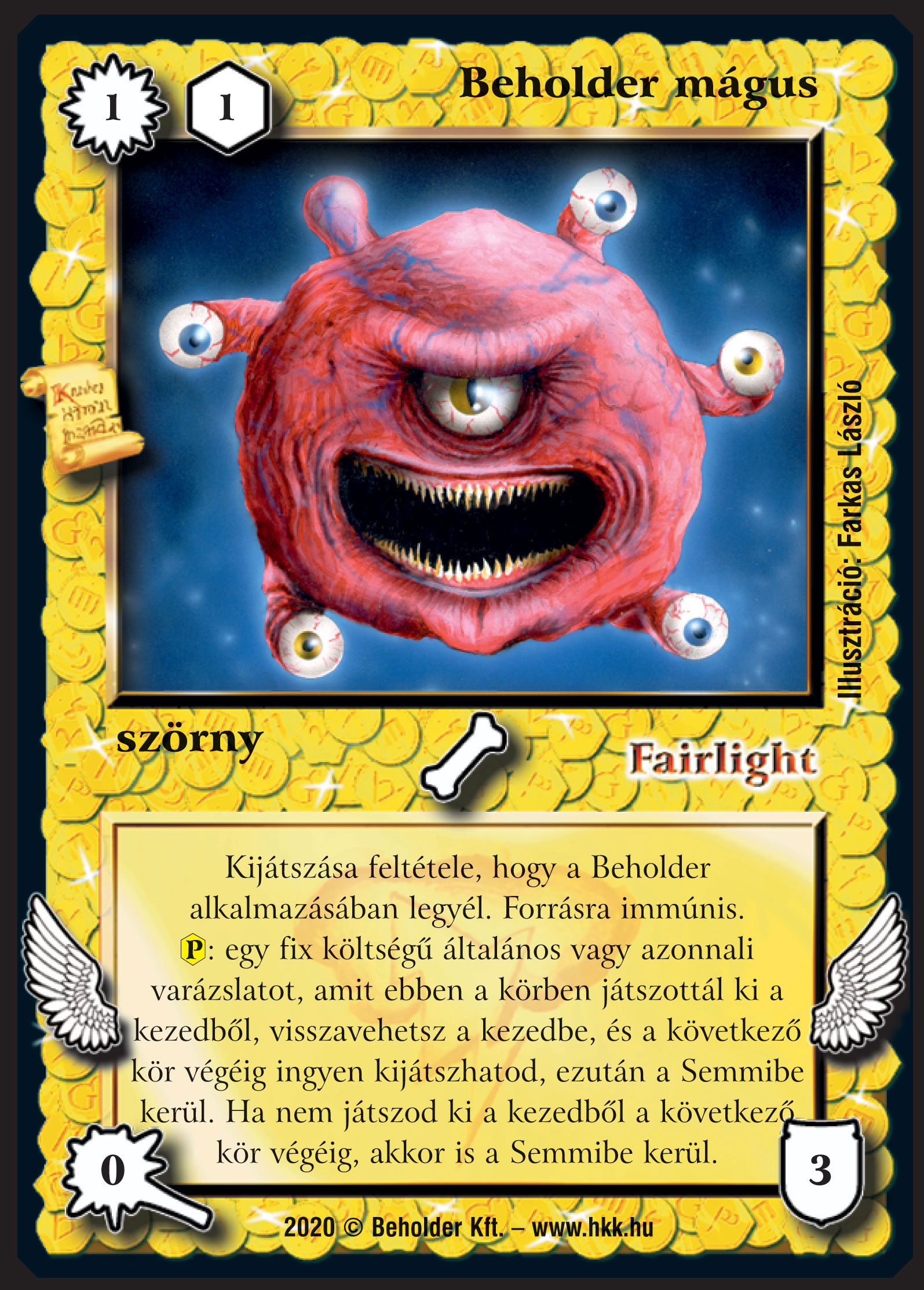 Ez a lap igazándiból csak egy emlék-kártya akart lenni a Beholder dolgozóinak, ill. így, hogy többet kaptunk, a tesztelőknek. Játékasztalt legfeljebb akkor fog látni, ha én kijátszom valaki ellen :D A nyomás során készült még A bajnok manifesztációjából is (téphető verzió), az új típusú kártyákra való átállás után valószínűleg már ezt fogjuk majd osztani a HSZ bajnoknak.