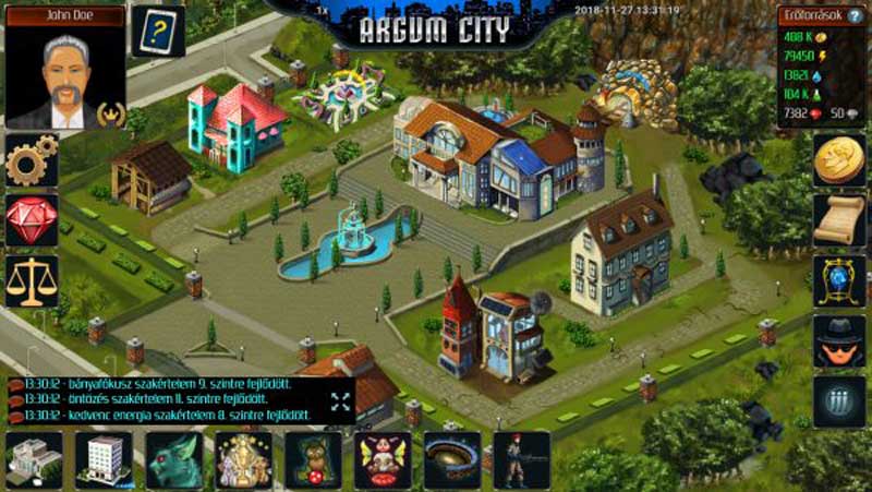 A fejlesztés során mindig figyelembe vettük, hogy eleve olyan paneleket, kezelőfelületeket tervezzünk, amelyek használata telefonon is kényelmes legyen. Nyilván a gombok a teljes képernyőhöz képest arányaiban nagyobbak a telón, hogy könnyebben rájuk lehessen bökni, messzebb vannak egymástól stb. Különös figyelmet fordítunk a tömörítésre is, hogy a grafikák - amelyekből azért elég sok van - ne foglaljanak több gigabyte-ot, és szerényebb képességű telefonokon is futni tudjon a játék, ill. ne kelljen folyamatosan egy töltőképernyőt bámulni. Nekem amúgy is az a problémám a mai játékok többségével, hogy a játékidő jelentős részét kitölti a „loading” képernyő, az Argum Cityben ez szerencsére abszolút minimális, hiszen a technológiának köszönhetően mindig csak az épp szükséges grafikákat tölti le a program, és utána pedig a böngésző cache-éből rántja elő őket, további töltögetés nem szükséges.