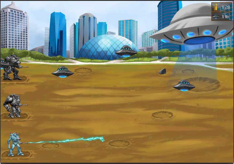 A nagy ufóból előözönlő kis ufókat kell robotjainkkal levadászni, szintén igazi klasszikus. Kellett valami igazán fiús játék is :)