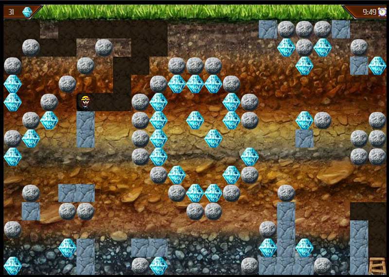 Ezt azt inkább logikai, mint ügyességi játékot egy klasszikus C-64-es játék, a Boulder dash ihlette. Emberünkkel a gyémántokat kell a föld alatt úgy kibányászni, hogy a sziklák közben ne zuhanjanak a fejünkre, és ne záródjon el a továbbvezető út. A sok tesztelés után a játék egész könnyűnek tűnt, de féltem, hogy egy kezdő nem fogja így találni, ezért van könnyű, közepes és nehéz fokozat is, aki sikeresélményre vágyik, mehet a könnyű pályákra (persze azok sem triválisak). A gyémántbányászat a bánya fokozásához kell, a vakondvadászathoz hasonló módon, itt is lesz „automata” mód.