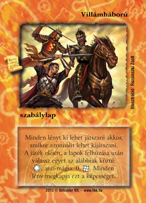 . A Villámháború egy rugalmas, több koncepció ellen használható szabálylap akart lenni, amelynek köszönhetően a mindig mostohán kezelt lényes paklik eséllyel veszik fel a harcot egy egykörös terülő kombópakli, egy kánterektől hemzsegő kontroll, és a rettegett drágítás ellenében is.