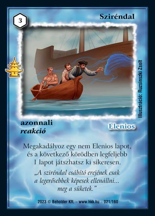 Célegyenesbe kanyarodtunk, így már csak 3 lap lesz bemutatva, mielőtt megnézhetitek az összes megjelenő lapot. És ha már a múlt hetet egy szirénnel zártuk (legalábbis félig), akkor maradjunk a dalolászó tengeri teremtményeknél és hallgassuk meg a dalukat. A Sziréndal egy végtelenül egyszerű kártya: lap megakadályozás ingyen egy kis hátránnyal. Már ha egy kontroll pakliban hátránynak tekintjük azt, hogy a saját körünkben csak egy lapot játszhatunk ki. Talán picit nagyobb hátrány, megkötés az, hogy tisztán nekronért jön ez a lap és mivel a kék színben mostanában egészen erős tisztán nekronos lapok (Gyémántfésű, Burástya szaporítótelep) jelentek meg, így lehet kompromisszumot kell kötni és nem ész nélkül használni mindet.
