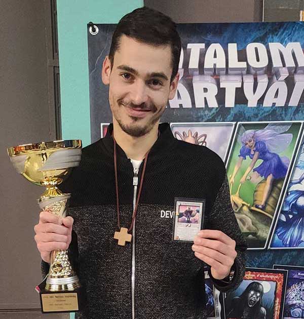 A történelem néha ismétli önmagát: Ricsi szinte mindenben lemásolta Ákos 2013-as teljesítményét. Az első napi hagyományos versenyt megnyerte (Zarknod bilincsével), második napon az egylapos formátumot szintén behúzta (Beldiannal). Aztán a 3. napon is gond nélkül a 4 közé jutott, ahol azonban kikapott a későbbi győztestől, egy bizonyos Moschnitzka Ádámtól. Azonban a bronzérmet megszerezte, nem találjátok ki, ki ellen: ellenfele Bognár Bálint volt. A két játékosban van még egy közös pont: azóta már mindketten meg tudták szerezni a Nyugat-Magyarországi Bajnoki címet. Ricsi egyébként azon a drafton egy Ork bélkiontókra és sok KF-tárgyra épülő good stuff decket rakott össze.
