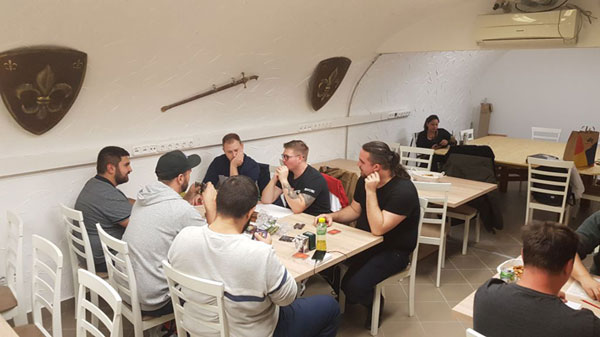 A közeli pizzéria is velünk van, onnan gyorsan és kultúráron juthat mindenki élelemhez.