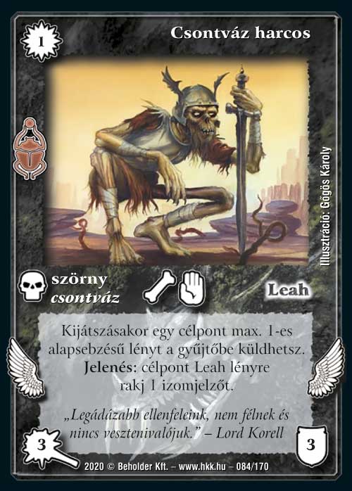 Nehezen tudom belőni a lapot, mert amit csinál, elég jó, de nem tudom hova betenni. Adná magát Rox pakliba, de ugye az nem igen létezik, a járjas változata meg még nem annyira létezik, ráadásul ott nem is lenne jellemző annyira, hogy megfogják a lapjainkat. Persze más paklikban hasznos lehet, hogy a megakadályozott lapunkat legalább egy Nekromanta csontvázra cserélhetjük, de nem látom hova használnám igazán ezt a lapot.
