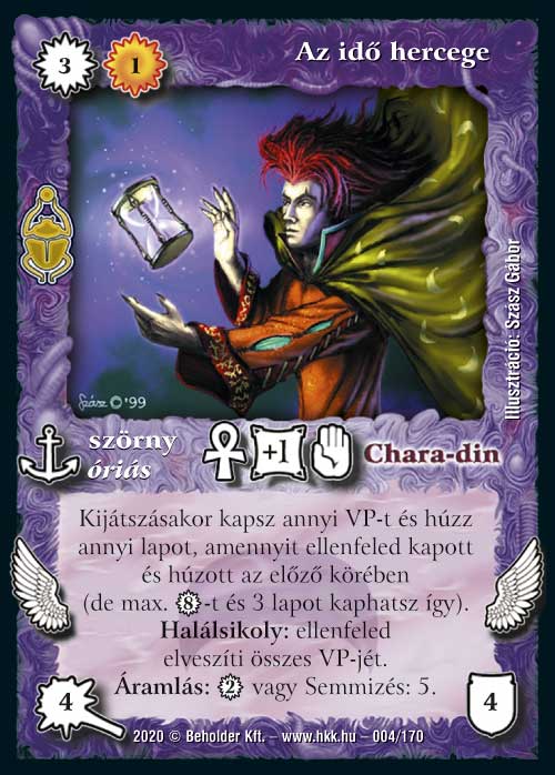 A bemutatóban már leírtam róla, hogy szerintem elég ütős kis kártya lett belőle, a Lassan járj!-ak egyik kedvenc ölése lehet belőle. Sok esetben már második körben kirakhatjuk, visszaadja nekünk a lapot és az ára egy részét, majd mehet is csatározni. És ez még kábé a legrosszabb eset, mivel nagyon könnyen adhat extra lapokat is, mert viszonylag sok versenylap húz, így tovább erősítve Az idő hercegét. Persze rendelkezik reakcióvédelemmel és kapott egy pofás áramlást is, nehogy a járjjal felálló paklink beragadjon a második körben.