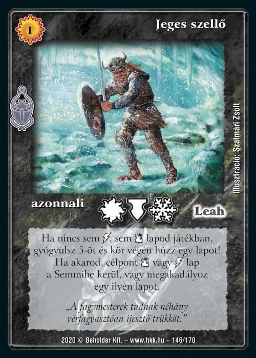 Ugye már mutattunk egy lapot, ami kifejezetten a jelenlegi durva villám és tűz lapok ellen készült, és most itt egy másik is. Nyilvánvalóan ennek a lapnak is függ az ereje attól, hogy miként fog alakulni a versenykörnyezet a közeljövőben. A Jeges szellő felújított változata elég erősen kívánja, hogy ne játsszunk a másik két elem lapjaival, és ezt cantripséggel hálálja meg. Azért azt nem kell talán ecsetelni, hogy egy szinte ingyenes kártya, ami leszed vagy megakadályoz valamit és mellé húzat egy lapot, az mennyire jó.