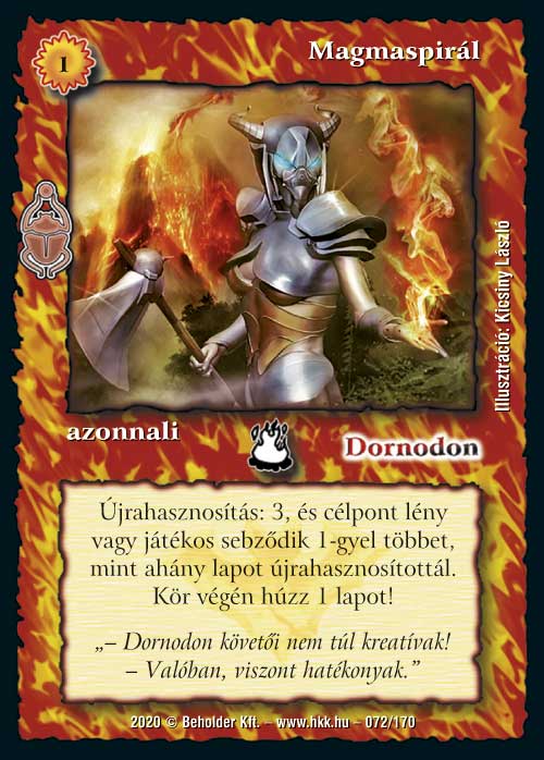 Amikor anno a háromszín szabályt bevezettük, elhatároztuk, hogy azért amelyik paklikból esik ki egy-egy fontos lap ennek köszönhetően, azokat kárpótoljuk kicsit. Nos, a Magmaspirál egyértelműen ennek jegyében készült és a Körforgás nevű csodalapot hívatott a klasszikus tűz pakliban pótolni. Emellett persze eléggé erős lövés lesz sealed formatokon is, ahol, mind az újrahasznosítása mind az olcsó cantripsége miatt kifjezetten erős lap lesz.