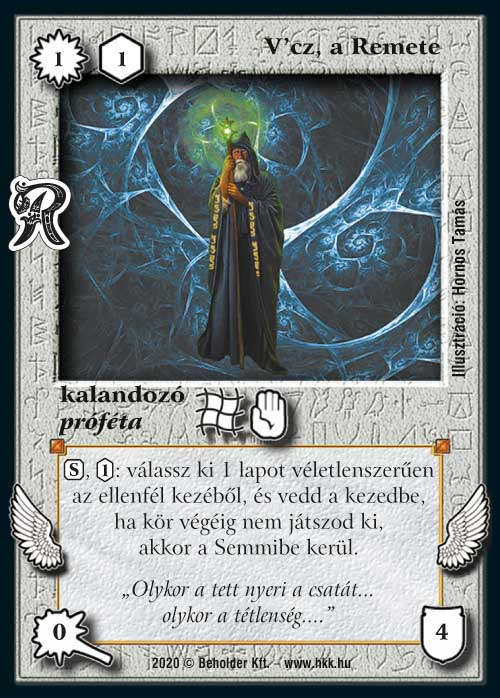 Talán a három viszonteladó promo lapjai közül ő lesz a leguniverzálisabb, hiszen önmagában is működik, és nem kell mellé megteremteni a környezetet. Piszok olcsón, minden körben megszabadítja ellenfelünket egy laptól a kezéből. Habár más lapok is tudnak körönként dobatni, mondjuk nem a Semmibe, de a remete azért lehetőséget teremt számunkra, hogy mi magunk éljünk a véletlenszerűen választott kártya adta lehetőségekkel. Meglátjuk milyen karriert fog befutni, de elméleti szinte minden létező pakliba beférhet, így nagyon rossz utat nem járhat be talán.