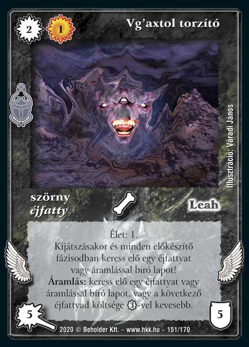 Volt idő mikor a Kyorg ősmágussal felálló éjfatty pakli komoly ellenfélnek számított az asztalokon. Akkor is az egyik legveszélyesebb egyed a Vg’axtol volt, aki megérkezése után hamar pontot tett a meccsek végére azzal, hogy bajtársait segítségül hívta. És ez nem lesz másképp az új verzióval sem. Annyit azért fejlődött, hogy már áramlásos kártyákat is képes keresni, így szélesebb körben lehet majd használni a lapot. Az már csak hab a tortán, hogy ha nincs elég keretünk kijátszani, akkor eltekerve is kereshetünk vele egy kártyát.