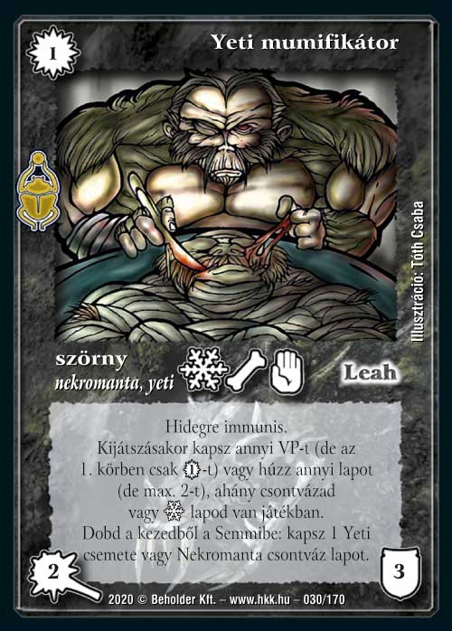 Róla is értekeztem már röviden a bemutatók során. Olcsó erőforrás lény, aminek kicsit meg kell teremteni az asztalon az alapokat, hogy igazán jól működhessen. Természetesen ő is illeszkedni fog a már sokat emlegetett járjas csontváz sereghez (jó, most már össze fogom rakni, hogy tényleg létezzen ilyen), de a hideg és yeti pakli is igen örüli fog neki. A kézből dobós képessége inkább Roxban működik jobban, ahol ingyen, nehezen megakadályozhatóan ad egy kántert az asztalunkra. Persze, ha némi extra sebzés kell a Yeti csemete is igen jól jöhet.