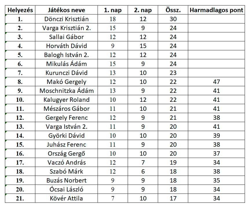 Voltak olyan mérkőzések, ami az egyik érintettnek már tétnélküli volt, a másiknak viszont még fontos. A sors iróniája, hogy ez pont a 16-17-18. helyen lévő hármast érintette, ugyanis az Ország Gergő-Vaczó András-Szabó Márk trió a már fix kieső Nagy Dániellel, Hundzsa Ferenccel, illetőleg Farkas Tamással játszottak. A tét egyiküket sem bénította le, mindegyikük behúzta az utolsó meccsét és mindhármójuknak sikerült a továbbjutás is, sőt, Gergő még egy plusz pontot is el tudott csípni.