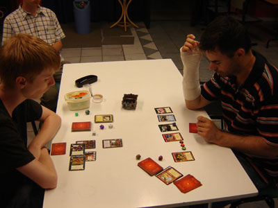 A másik meccsen pedig Moschnitzka Ádám Smackkal, Szilmill spórákkal (új), A tiszta lelkek városával, Fekete özveggyel (új), Sheran könnyeivel, Szapora törpével és Méonech száműzöttel terrorkodó összeállítása múlta felül 3:0-ra Nedvesi Gábor Átoksólyommal (új), A föld síkjával (új), Ostrommal, Orgling tanácsadóval összerakott pakliját.