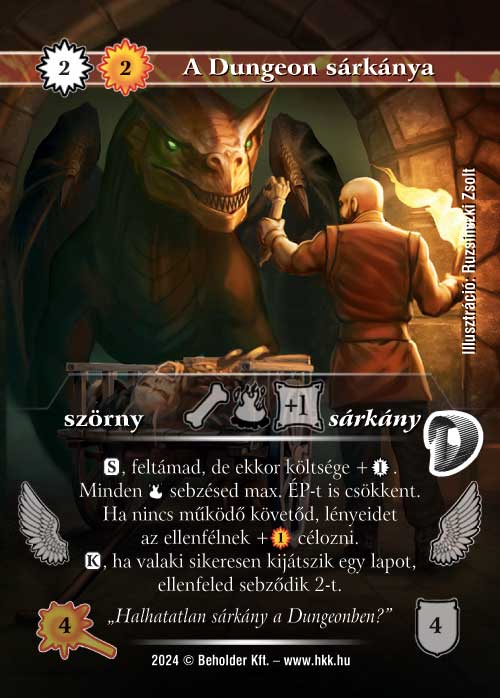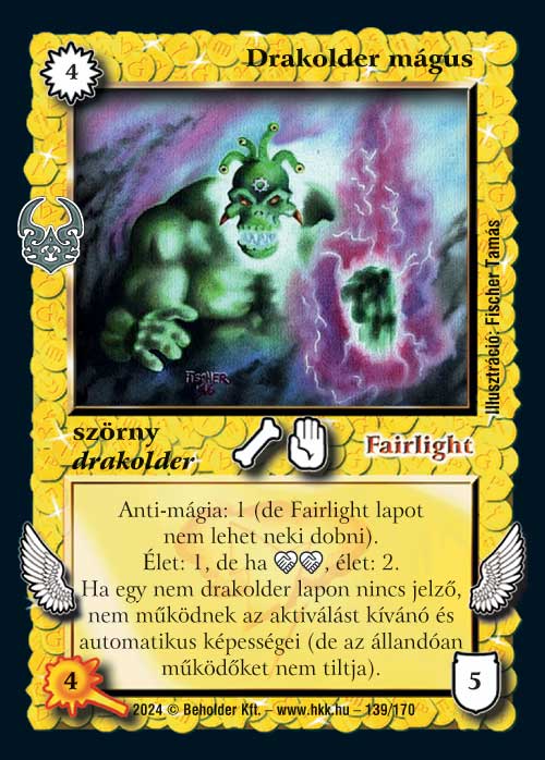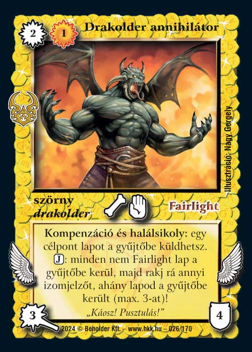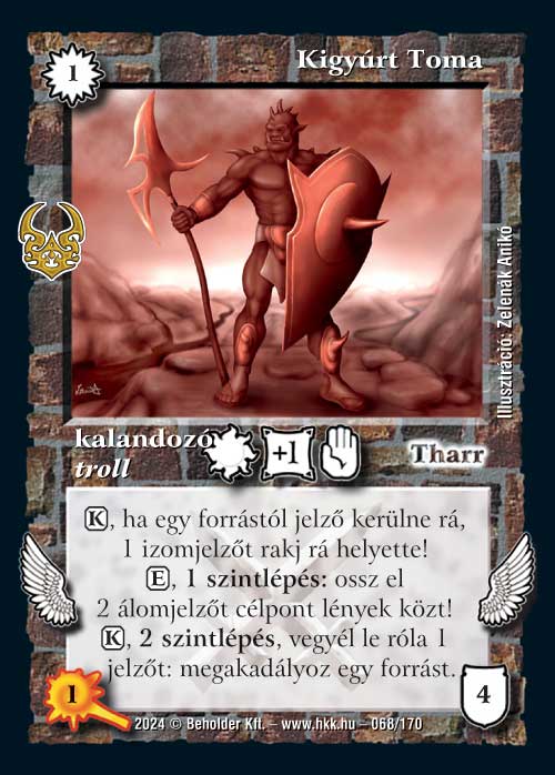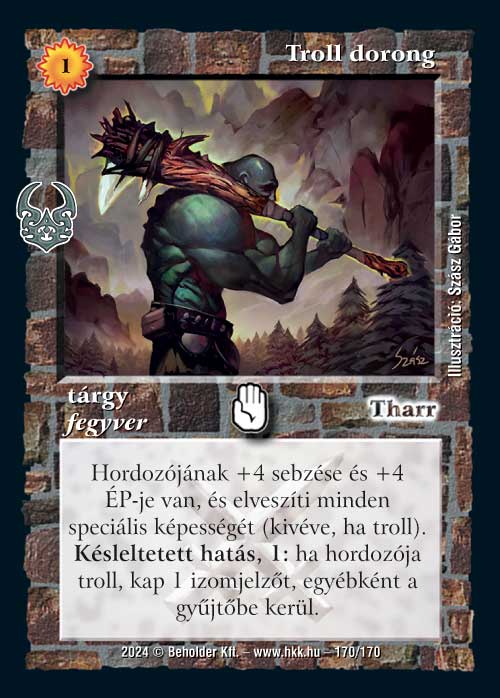 Érdekes, kreatív lap. Trollok közé nagyon hasznos ütőerő, amúgy meg egy jó leszedés. Leszedésként az vele a baj, hogy mivel a mi körünkben történik, egyszer a négyes sebzést be kell vele vállalni, amúgy meg az, hogy fog-e létezni a troll pakli. De az ötletessége miatt mertem neki eggyel több pontot adni, mint amennyit először gondoltam.