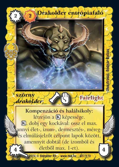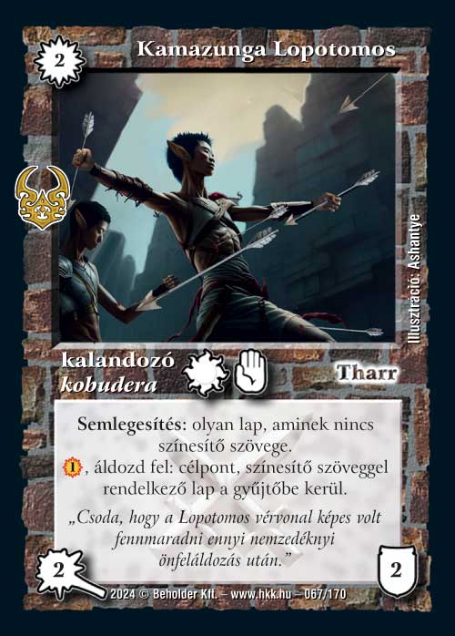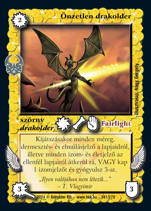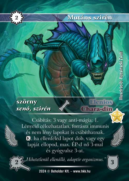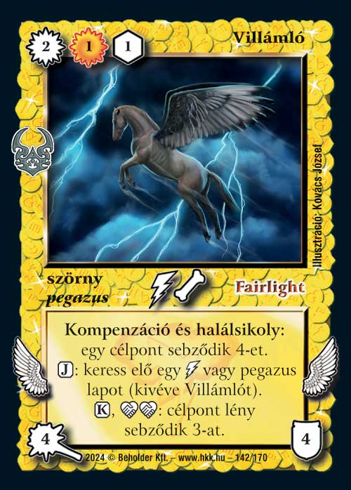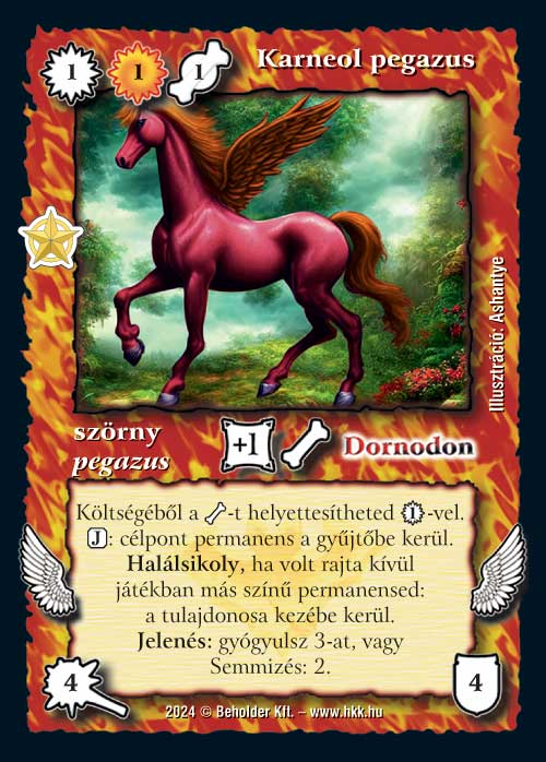 Azt leszámítva, hogy az egész tesztciklus alatt kaméleonsörényű pegazusnak olvastam valamiért, nagyon nem maradt meg nekem ez a lap, talán nem is véletlenül. Pegazusok közé persze ki lehet próbálni, de szerintem a 3 vp-s költsége rengeteg, még akkor is, ha amúgy erős képessége és frappáns védelme van. Láttam már Zarknodos pakliban is próbálgatni, de ott meg ritkábban jött ki vele a másik szín. Ezzel együtt nem használhatatlan lap, de szerintem javarészt vannak nála jobbak.