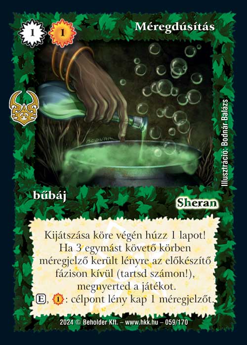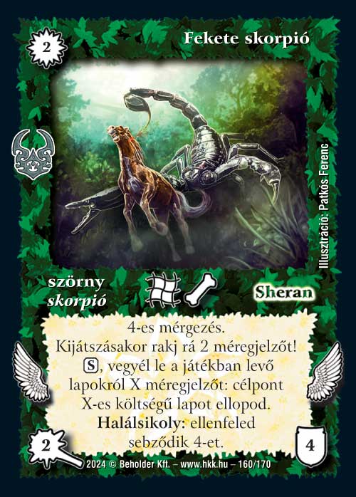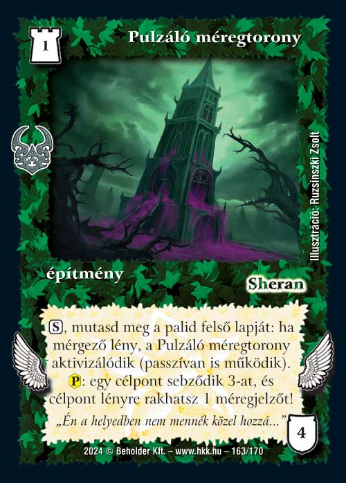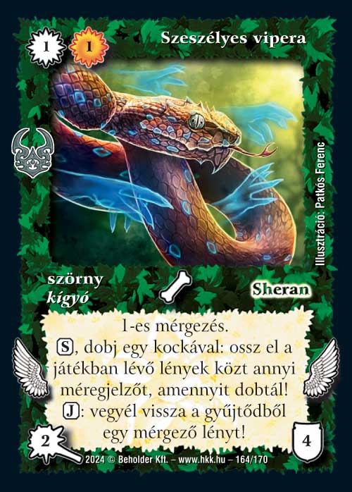 Nem sok választja el attól, hogy jó lap legyen, de a kötelező építő költség miatt szerintem nem lesz az. Általános tapasztalat, hogy a mérgező pakliban viszonylag könnyen lehet a lényeinkből masszív ütőlényeket csinálni, és nem ad túl nagy előnyt, ha ütés helyett egy ilyen épít fel valaki. Persze azért a nagykörönkénti 6 ÉP sebzés nem rossz, de ennek is van egy kockázati effektusa: az elsőt saját körben meg kell lépni, és ha az (S) képesség nem jön össze, akkor az ellenfél körében – amikor azért a védekezési bónusz nélküli lényeket könnyebb vele lelőni – nem fog működni. Márpedig, ha az epikus paklik pakliépítési tendenciája folytatódik, akkor nem lesz annyi mérgező lény benne, hogy mindig működjön.