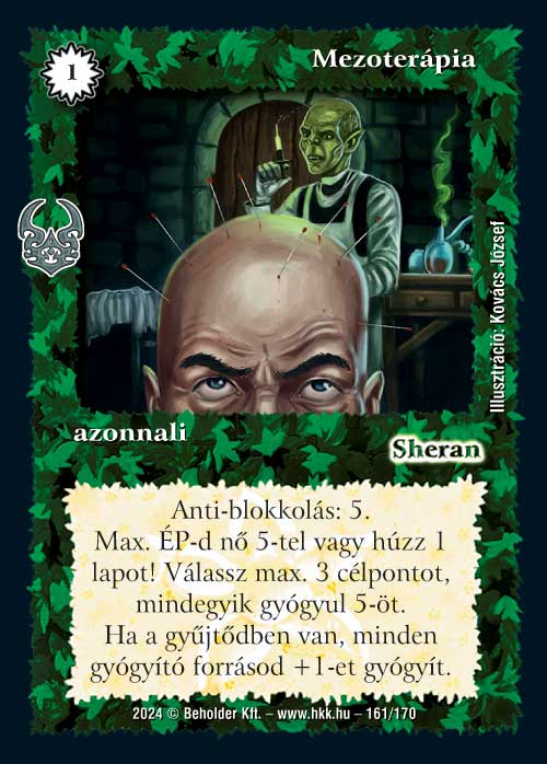 Bontott és draft környezetben erős pislogásra ad majd okot, amikor csatában meggyógyítjuk vele egy lényünket, ÉS mi is gyógyulunk 5-öt, ráadásul cantrip is. Hagyományos környezetben a gyógyulós pakliba lehetne jó, de a hazai egészségügy viszonyait ismerve lehet inkább más utakat keresnek majd a játékosok a gyógyulásra.