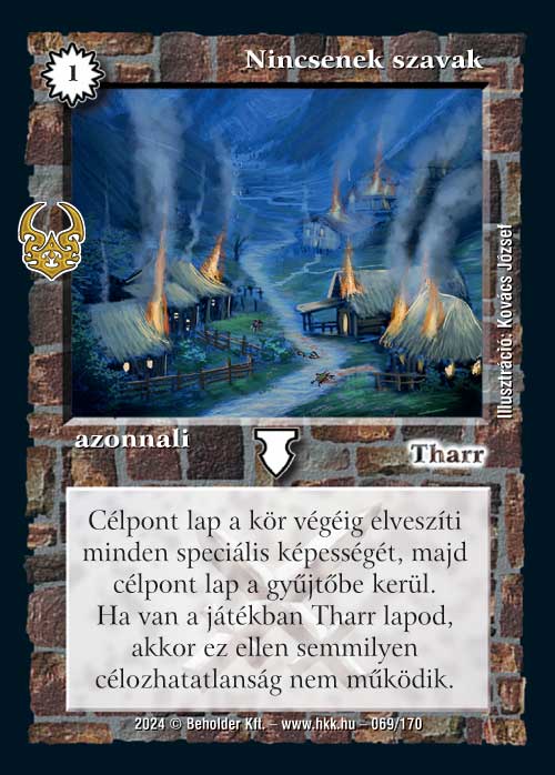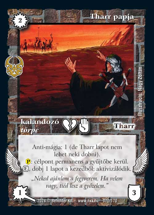 Megelőlegezem neki a magas pontszámot, mivel egy hasonló képességekkel bíró Tharr lap – az Ongóliantok dühe – már egész szép karriert futott be. Ahhoz képest ennek óriási előnye, hogy akár ingyen is jöhet, valamint lényt is megfoghat, hátránya viszont, hogy néha drágább is lehet, nincs kompenzációja, jelenése, illetve a zanszilánk költséggel sem lehet játszani. Alapvetően én a dühöt jobbnak érzem, de ha intenzíven építünk a kalandozókra, akkor ez a lap is komoly meglepetést tud okozni. Márpedig kalandozók azért elég sok pakliban előfordulnak.