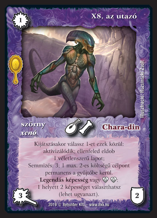 A fél éve még szupernépszerűnek számító epikus követő, a Legfőbb káoszmester mostanában kicsit háttérbe szorult, ám ha valami, akkor az X8 biztosan beindítja majd a fantáziát, hiszen többek között ez az egyik koncepció, ahol ki lehet majd sajtolni a legtöbbet ebből a nagyhatalmú xenóból: Persze kellenek majd mellé a haverjai is, de szerencsére van bőven merítés. A Chara-din alienhasonmásaira erősebben építő koncepciók (leginkább: Hegymélyi keltető + Chara-din követője) szintén előszeretettel fogják használni multifunkcionális mivoltának köszönhetően, de ki tudja, talán a legendás pakli is jobban előkerül majd hatására, hiszen azért 1 manáért leszedni és dobatni, vagy akár valamelyik funkciót beduplázni több mint ízletes.